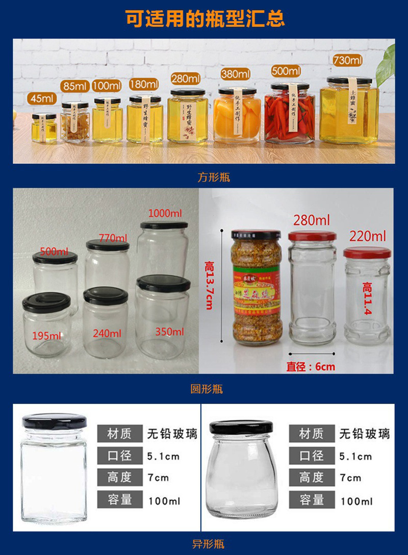 提蓋上蓋機(jī)可用于馬口鐵蓋提蓋,方形瓶,圓形瓶,異形瓶,等玻璃瓶子的上蓋工作
