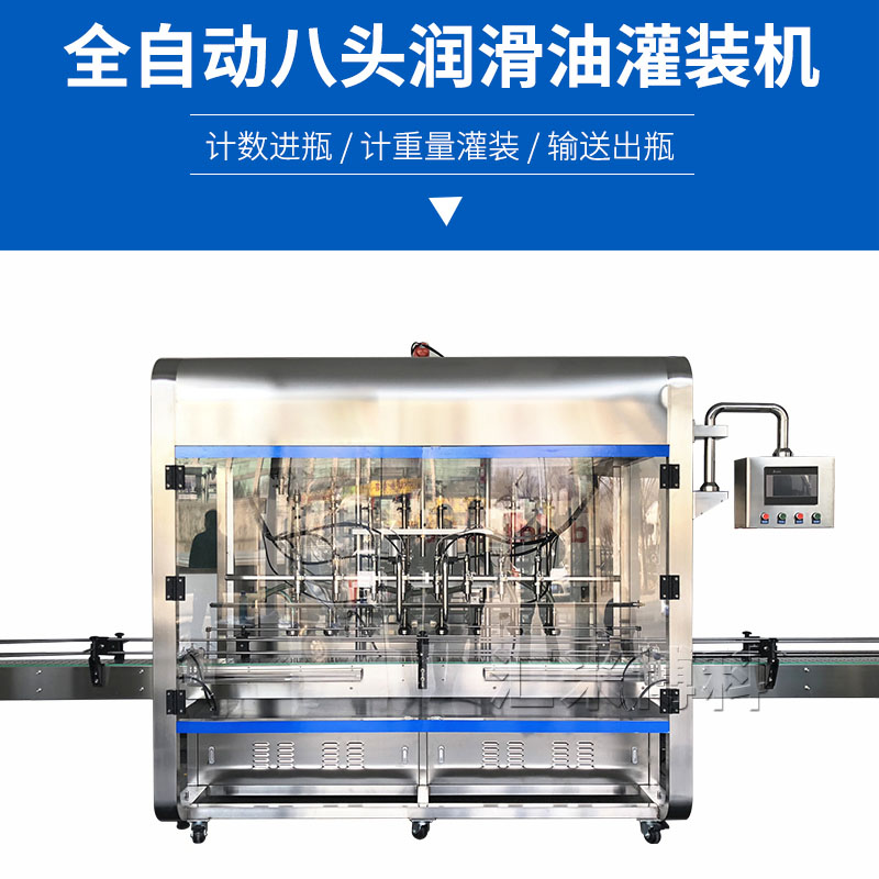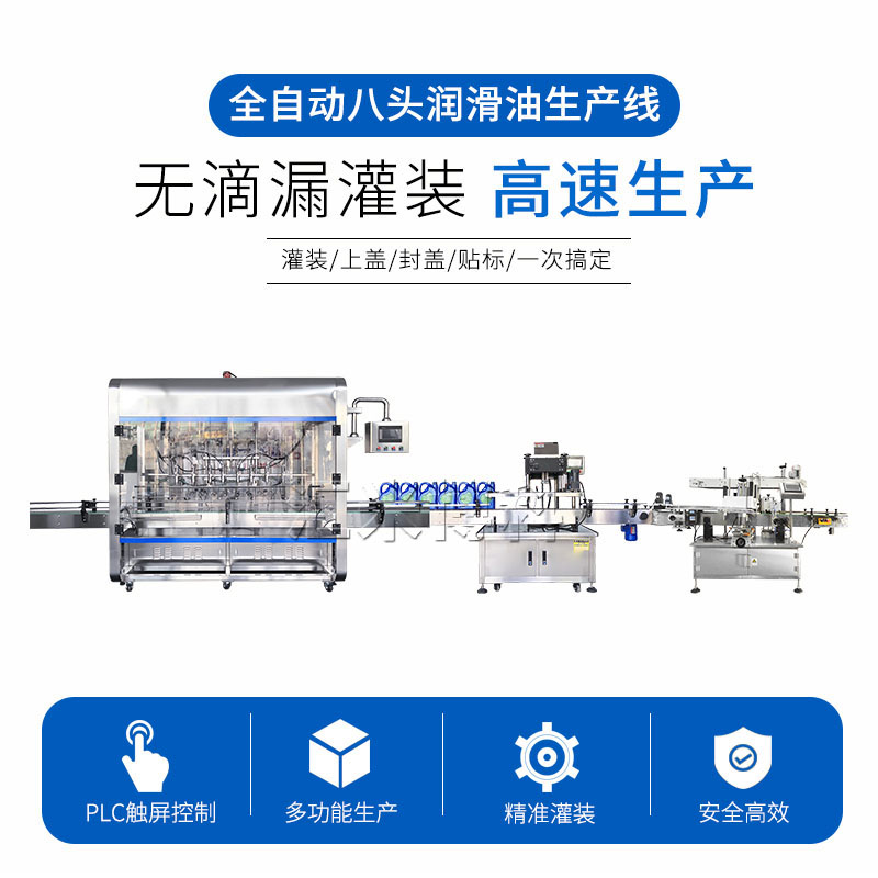 全自動(dòng)油脂灌裝流水線,由全自動(dòng)灌裝機(jī),壓蓋機(jī)和貼標(biāo)機(jī)構(gòu)成,使用橢圓齒輪流量計(jì)式的計(jì)量方式,具備較高的灌裝精度,輸送帶速度可根據(jù)不同的瓶型進(jìn)行調(diào)節(jié),適用多種不同的瓶型,與物料接觸的部分選用不銹鋼材質(zhì)制作,保證衛(wèi)生的同時(shí)提升美觀性,設(shè)備經(jīng)久耐用,穩(wěn)定性強(qiáng),是食用油、潤(rùn)滑油等行業(yè)理想的灌裝設(shè)備。
