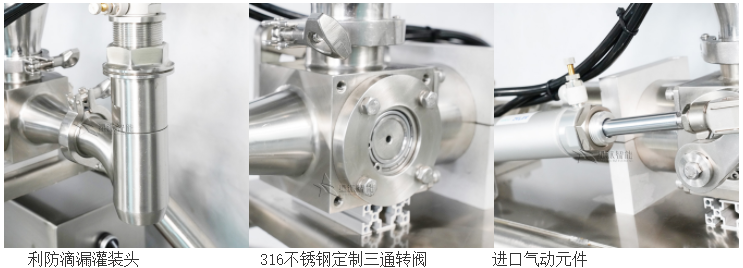1、防滴漏灌裝頭:316L不銹鋼專為醬料灌裝設(shè)計(jì),通過型好,內(nèi)外精拋,真正的食品級(jí);